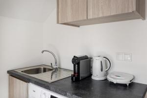Le logement dispose d’une chambre séparée avec un lit ainsi qu’un coin cuisine entièrement équipé comprenant une plaque de cuisson, un grille-pain, une bouilloire électrique, une machine à café et des ustensiles pour des repas agréables. La salle de bains comprend une douche, un sèche-cheveux ainsi que des articles de toilette offerts tels que savon corporel et shampooing. Serviettes et linge de lit sont fournis avec des équipements supplémentaires comme un lave-linge, un minibar, un coin salon, une armoire-penderie ainsi qu’un lit bébé ou berceau , des oreillers anti-plumes assurent votre confort durant tout votre séjour.