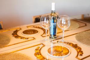 Diese klimatisierte Wohnung verfügt über zwei Schlafzimmer, ein Wohnzimmer mit Sitzbereich und Sofa sowie ein privates Badezimmer mit Badewanne, Bidet, WC und Haartrockner. Der Fußboden besteht aus Parkett, zu den Annehmlichkeiten zählen Handtücher, Bettwäsche, Heizung sowie Bügelmöglichkeiten inklusive Bügeleisen und Bügelbrett.