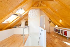 Hosté mohou využít širokou škálu kuchyňského vybavení: myčku nádobí, rychlovarnou konvici, lednici, troubu, toustovač, kávovar i varnou desku včetně mikrovlnné trouby. K dispozici je kompletní kuchyňské náčiní i jídelní stůl pro stolování uvnitř apartmánu. Mezi další služby patří topení, žehlička s žehlícím prknem, pračka, ložní prádlo, ručníky, pracovní stůl, šatní skříně, sušák na oblečení, dětské postýlky na vyžádání, bezplatné WiFi dostupné po celém ubytování podporované internetovým připojením přes kabelové televizní kanály tam kde lze plus možnost parkování na ulici. Přístup do horních pater je možný pouze po schodech.