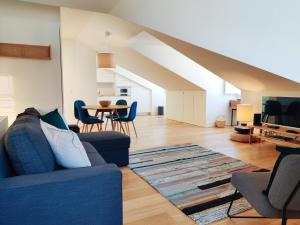 K dispozici je také koupelna s vanou a vysoušečem vlasů oraz možnosti praní včetně sušičky vedle pračky. Budova má výtah pro snadný přístup k apartmánu. Hosté mohou využít WiFi dostupné ve všech prostorách ubytování.