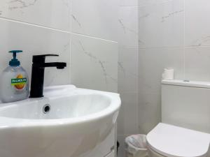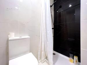 The apartment features one bedroom alongside a bathroom equipped with shampoo, toilet, and shower facilities. Additional conveniences include a washing machine for guest use.
