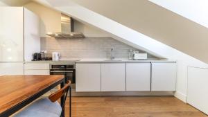 Questo appartamento duplex climatizzato comprende due camere da letto e tre bagni dotati di docce e asciugacapelli. Gli ospiti possono usufruire di una cucina completamente attrezzata con forno, piano cottura, frigorifero, lavastoviglie, microonde, macchina del caffè, tostapane, bollitore elettrico oltre ad utensili da cucina e zona pranzo. Tra i comfort aggiuntivi vi sono riscaldamento, divano comodo, cuscini sintetici anti-piuma (non piuma), asse da stiro e lavatrice.